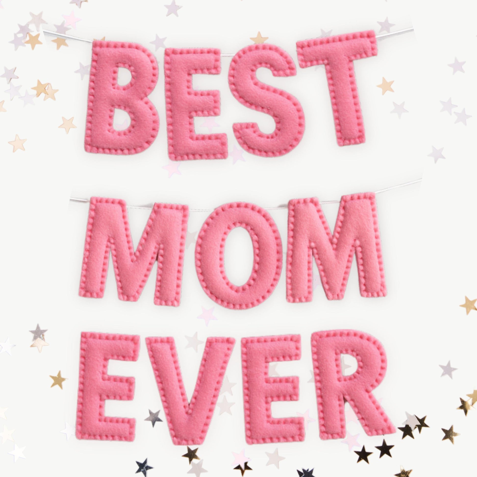 BEST MOM EVER Felt Garland – Handmade Pink Plush Banner for Mother’s Day, Baby Shower, or Just Because