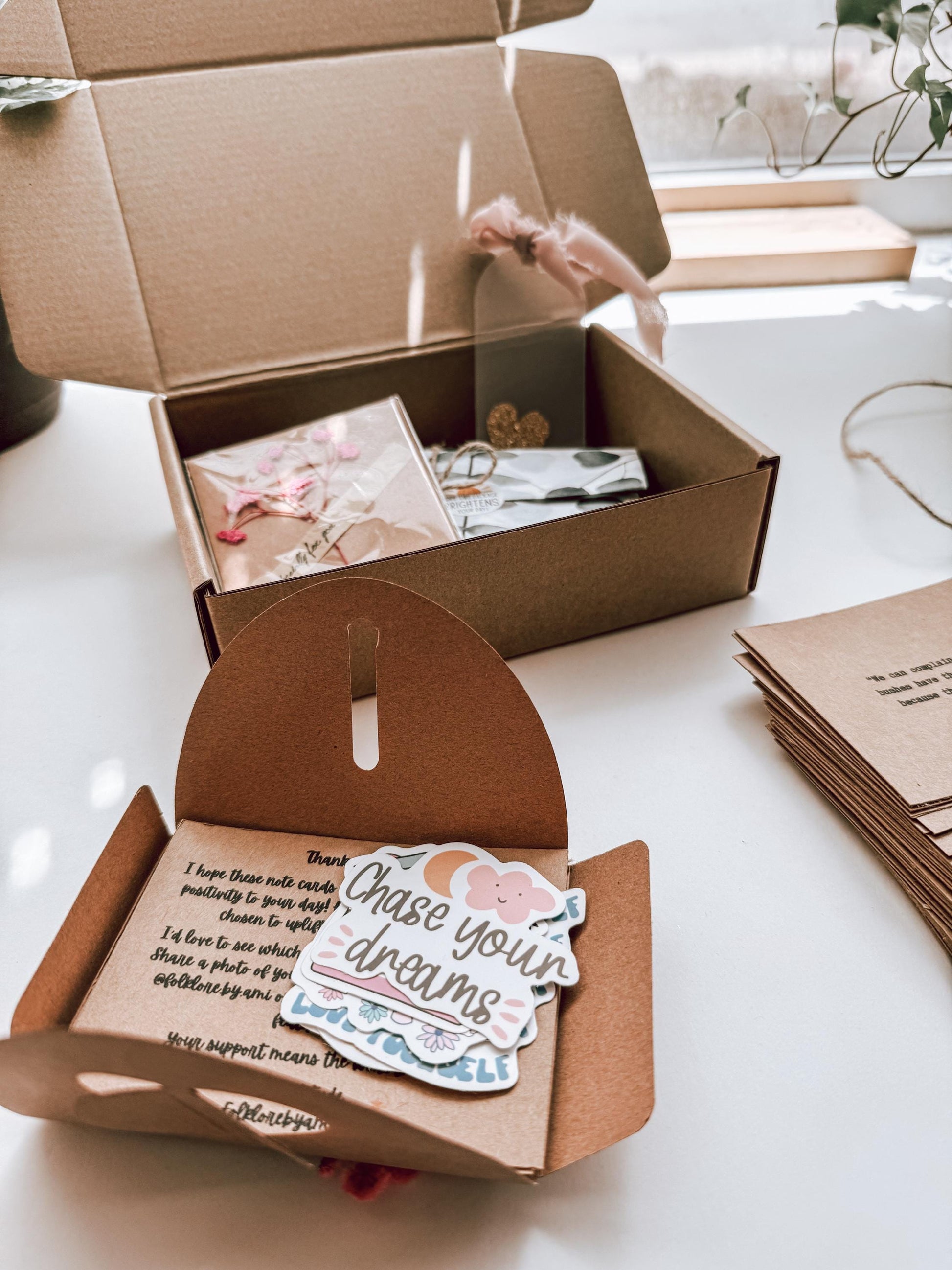 • A collection of carefully selected 20 or 40 calming and positive inspirational note cards (your choice), each printed on high-quality kraft cardstock.