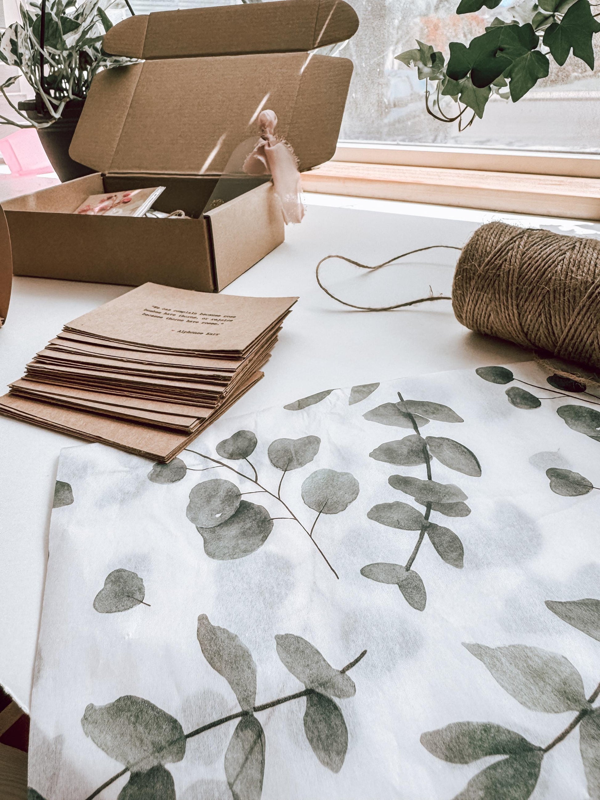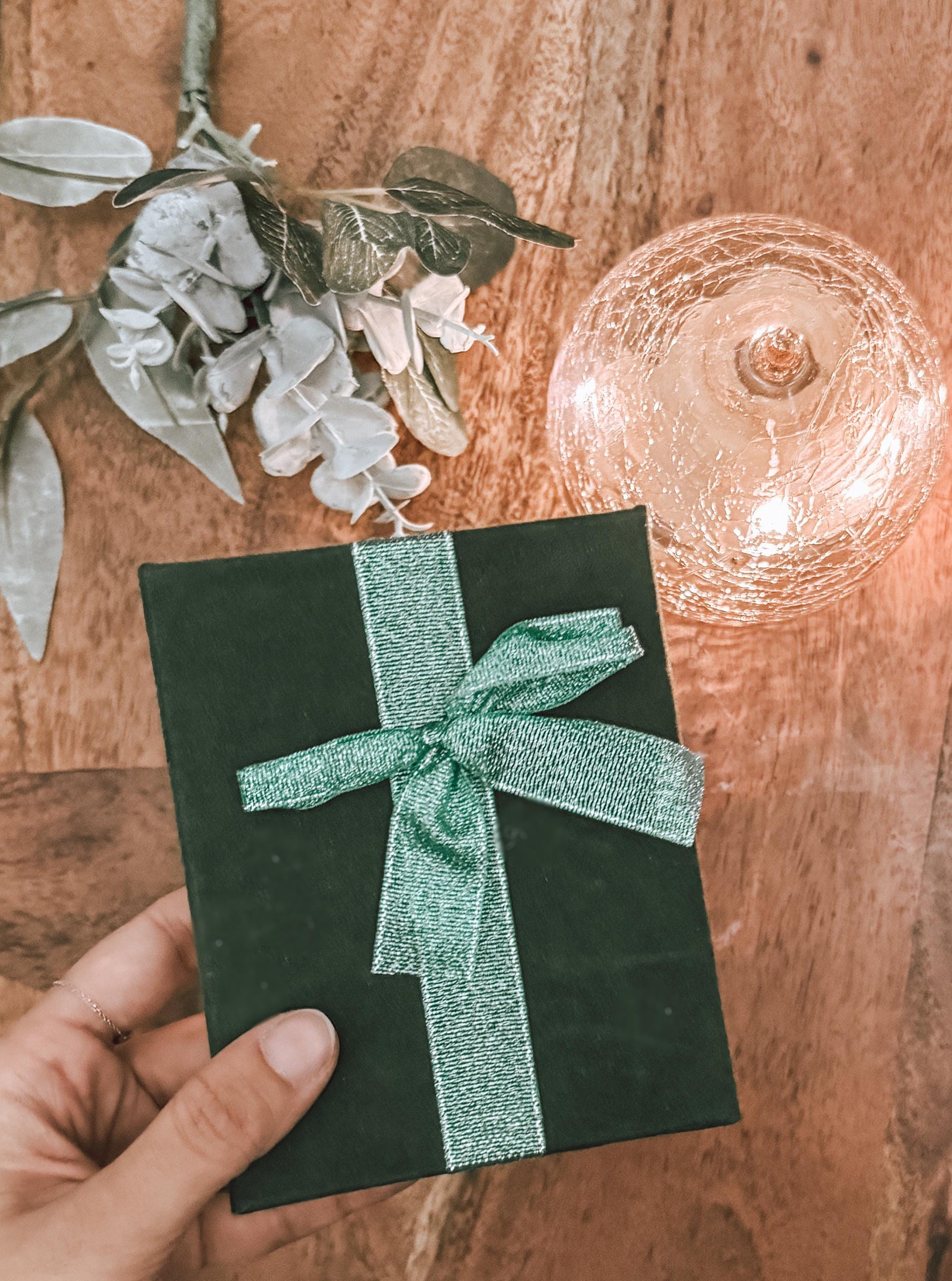 • A box, adorned with beautiful linen ribbon and gift wrapping paper, making it perfect for gifting.