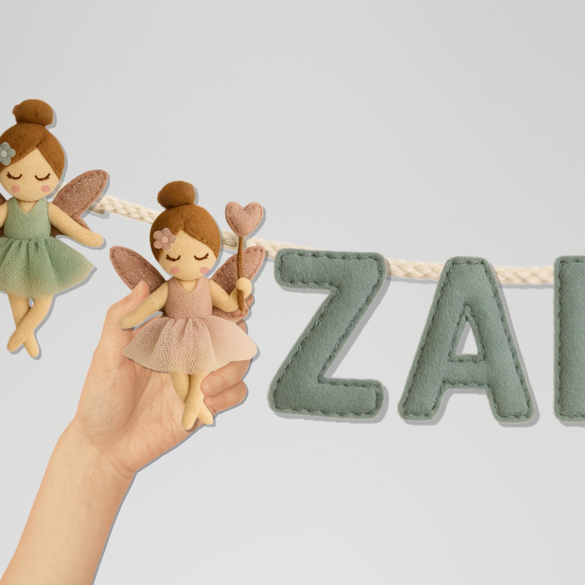 Personalized Fairy Name Garland – Custom Felt Letters Banner, Nursery Wall Décor, Baby Shower Gift, Handmade Girls Room Decoration